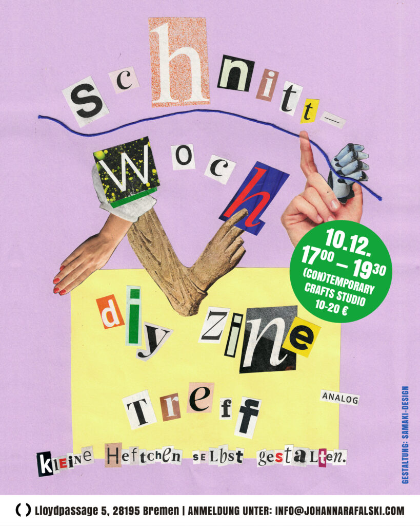 Im Workshop zeigen wir euch verschiedene Techniken, vom Falten und Schneiden bis zum Layouten und Vervielfältigen. Vorkenntnisse braucht ihr keine – nur Lust am Experimentieren und Gestalten.